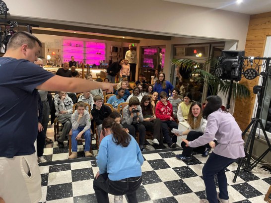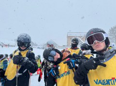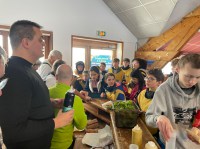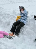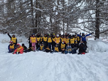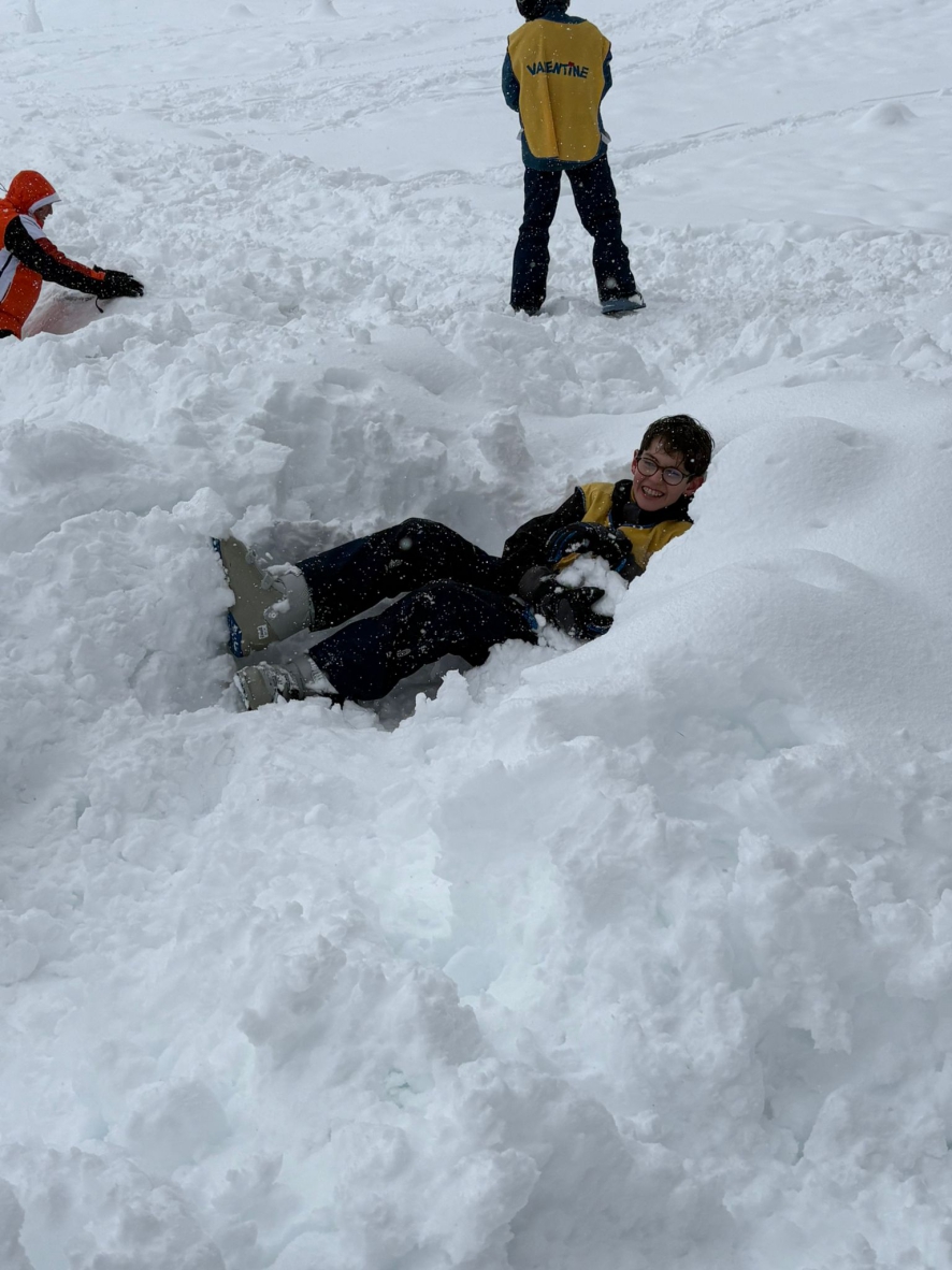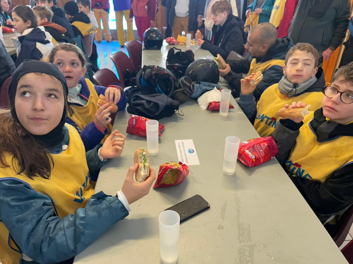 Le conditions météo ne nous ont pas permis de continuer à faire du ski, nous avons prit la sage décision de redescendre à l'hotel... mais avant, nous avons quand même pique-niqué à la salle de la station et fait quelques jeux dans la neige...