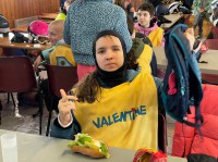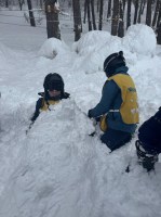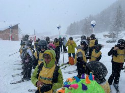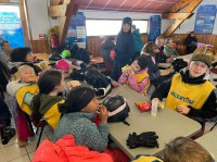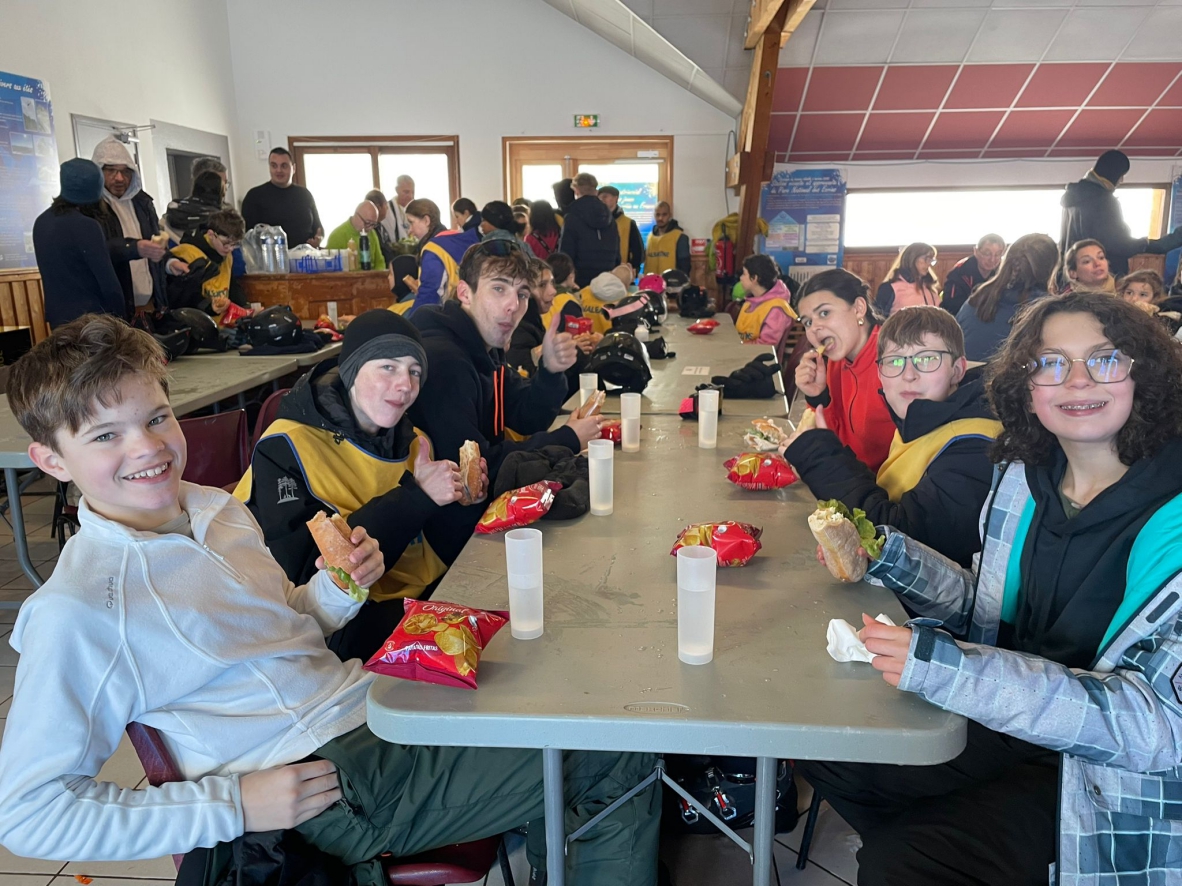 Le conditions météo ne nous ont pas permis de continuer à faire du ski, nous avons prit la sage décision de redescendre à l'hotel... mais avant, nous avons quand même pique-niqué à la salle de la station et fait quelques jeux dans la neige...